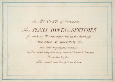 In the woods would be a thatched cottage modelled on a Severn-side fisherman’s hut which ‘being unlike the usual cottages in Norfolk, it will appear the habitation of industry with an affectation, rather than the reality of penury’. All this was part of his suggestion for making pleasure grounds which were an ‘essential part of a perfect place being peculiar to the Ladies’.