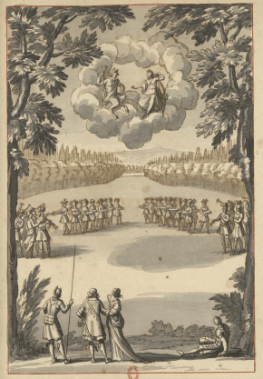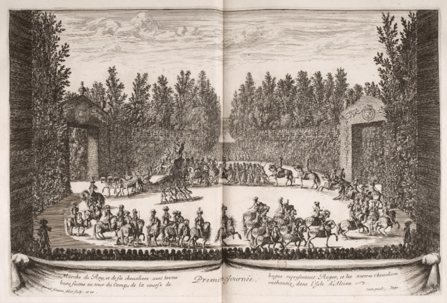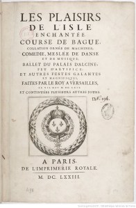 The official account begins: “The King wished to honour the two queens [his mother Anne of Austria and his wife Marie-Thérèse] and give all the court the pleasure of several extraordinary fetes, in a place which had been ornamented to the highest level possible for a house in the country: he chose Versailles…a chateau that could be called an enchanted palace.” [my translation]