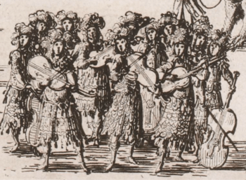 You’ll know that Louis was often depicted as the Sun King or Apollo. This was an association that had only begun around 1660 but very quickly it caught on. Here because the the king was playing Roger he couldn’t be Apollo himself so was followed by the chariot of the sun, eighteen feet high, fifteen broad, and twenty-four long. In turn it was followed by representations of the four historical ages – gold, silver, brass, and iron- the celestial signs, the seasons, and the hours who then performed a ballet.