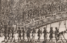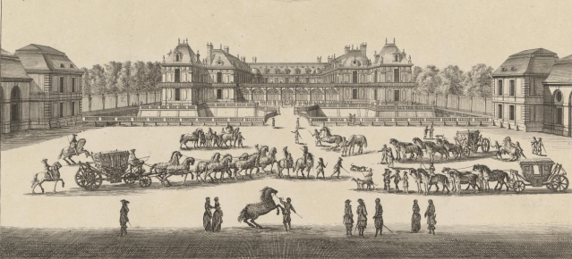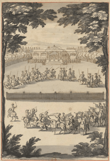 Next came a carrousel, a kind of hangover of a mediaeval tournament that saw riders tilting with lances and and trying to unhook a ring from its stand. Louis had already held a similar tournament, next to the Louvre in Paris, a couple of years earlier in front of 15000 spectators and that too had been recorded by Silvestre.