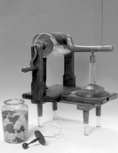 Just over 300 years before I failed ‘O’ level Physics, Otto von Guericke, invented a primitive form of friction-making machine and it was followed by other more sophisticated devices, notably Francis Hauksbee’s basic generator which involved a glass sphere that could be rotated rapidly against a woollen cloth to create friction and thus static electricity. But being able to create static electricity doesn’t actually get the resultant spark to the patient.