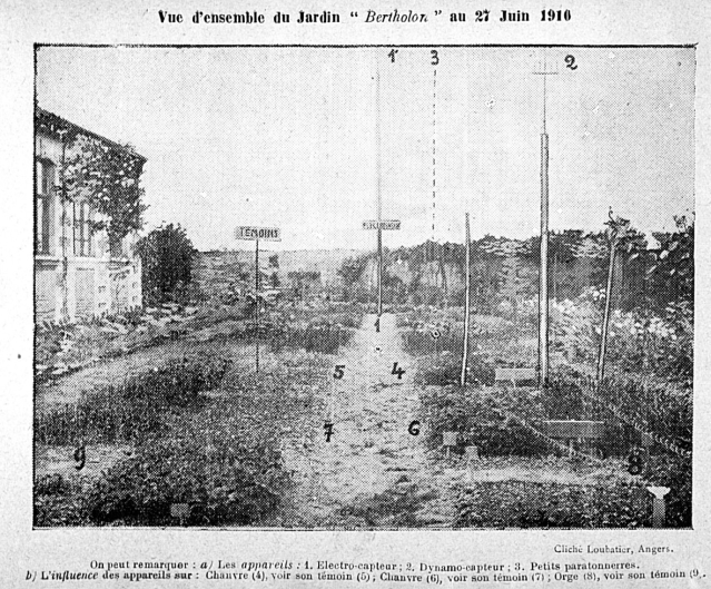 Paulin refined Abbe Berthelon’s electro-vegetatometer devising an atmospheric antenna that he called a geomagnetifere. Installed initially in a field of potatoes, plants within its reach were greener, healthier and produced more potatoes. Later it was tried in vineyards and produced sweeter larger grapes that produced better quality wine.