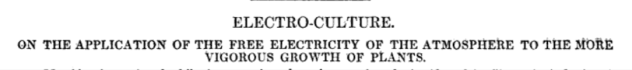 Eventually in 1904 he published Electricity in Agriculture and Horticulture in which he offered his detailed findings that there was “an increase of the harvest of every kind of plant which has come under treatment, but also a favourable change of their chemical compounds” which made fruit sweeter and scent stronger etc.