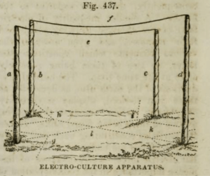 Although Benjamin Martin’s perpetual electrification machine that I wrote about last week disappeared without trace it clearly didn’t not stop research and publication about the effects of electricity on plants continuing on both sides of the Channel…and less than a hundred years later The farmer’s guide to Scientific and Practical Agriculture announced that “Electricity maybe classed among special manures” and that was only just the start…![]()