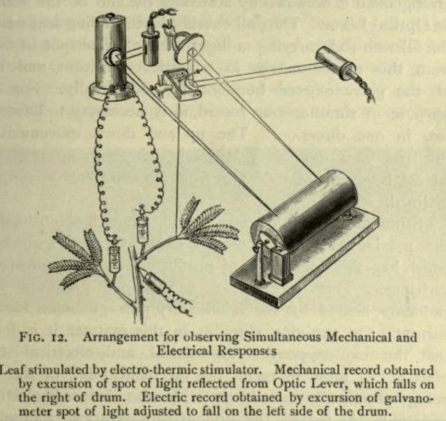 There were all sorts of theories but no certainty until the great Indian plant physiologist Sir Jagadish Chandra Bose devised incredibly sensitive equipment to prove that plants respond physically, in the same way as animals, to electrical impulses. This was written up in a series of books including Response in the living and non-living [1902] Comparative electro-physiology (1907) and The motor mechanism of plants (1928)