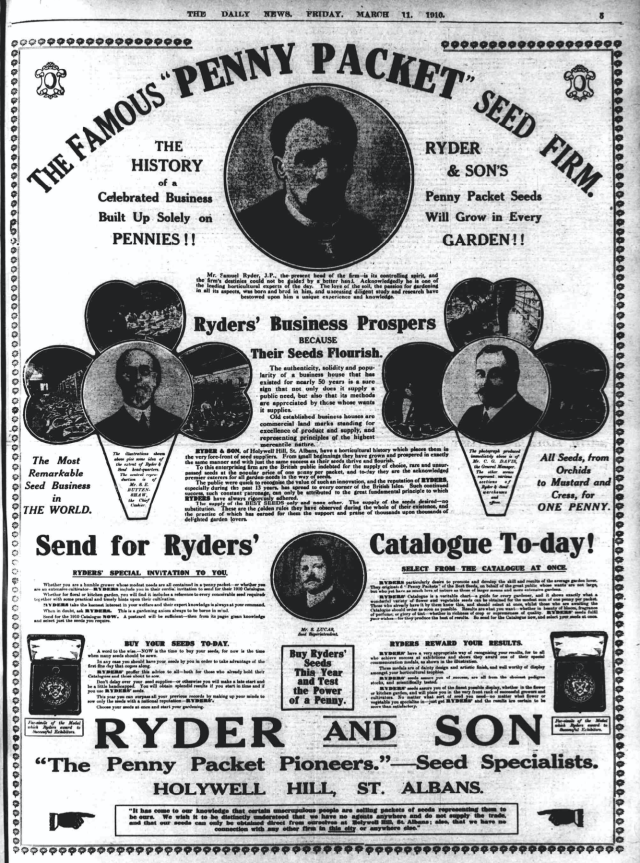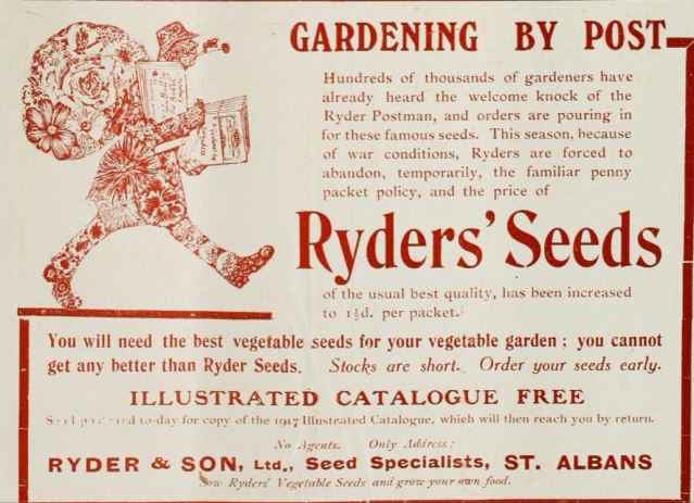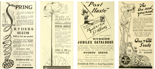 By 1910 Ryders were sending out a million copies of their catalogue all over the world, and an average of 10,000 seed packets in a 12 hour day.