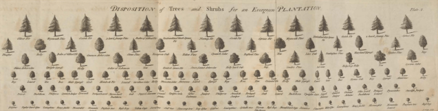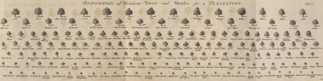 Hunter’s Sylva was extremely well received and may well have encouraged another wave of forestry and estate management books. Some, like William Marshall’s Planting and Ornamental Gardening of 1785, were largely derivative but others were based on practical experience. Many of these were written by the head gardeners on great estates including James Meader, who worked for the Earl of Chesterfield and later the Duke of Northumberland, and wrote his Planter’s Guide of 1779. Others included a Treatise on the manner of raising Forest trees probably by the Earl of Haddington which recorded the experiments carried out at his Tyninghame estate, and Robert Callender’s book on growing Hawthorn of 1785. More mathematically based, rather like Lnagley’s book we saw earlier, James Anderson’s Miscellaneous Observations on planting and training timber trees of 1777 which contains very detailed calculations of costs of planting, and expected profit margins etc.