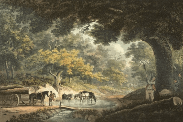 A few books on forestry and woodland planting appear in the early part of the 18thc in the footsteps of Evelyn but things begin to move a bit faster from the 1750s with many more tracts being published. Most are pale echoes of Sylva, copying the structure if not Evelyn’s actual words, and definitely seeming to lack his passion. Sadly too few carry any images which can make them rather dull for the modern reader. Luckily the interest in trees and forests had also began to attract artists and so there are plenty of contemporary images to help illustrate what I’m talking about.