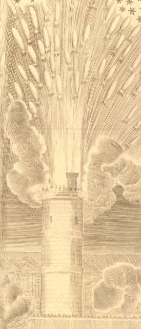 After this there isn’t much visual evidence of firework displays in Britain until the Restoration, although there are several books on gunnery, which include images and descriptions of devices that could be used for entertainment as well as warfare.