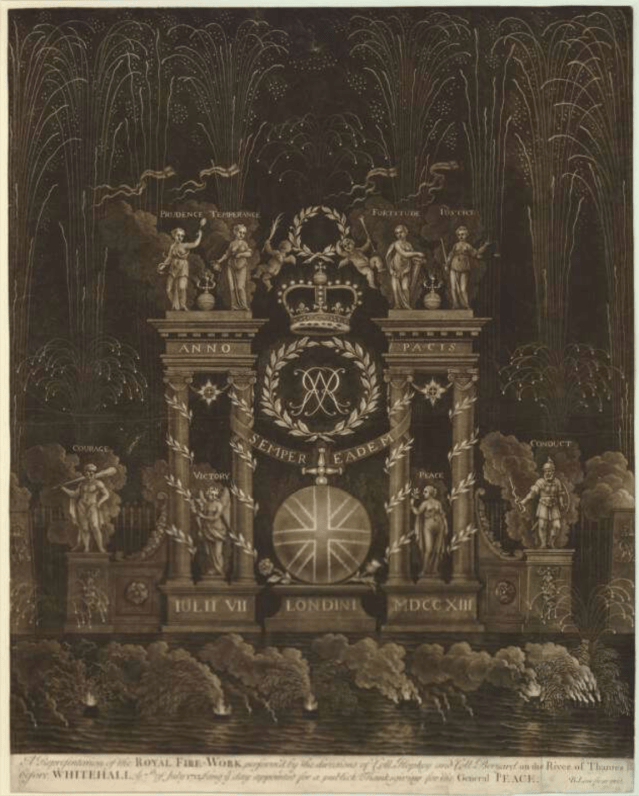 However it’s the celebrations held for the Treaty of Aix le Chapelle in 1748 that were to become the most celebrated. This marked the end of yet another one of the seemingly endless European wars, this time the eight year long War of the Austrian Succession and George II was determined to do things in style.
