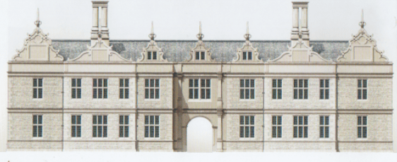 As Paula Henderson’s The Tudor House and Garden shows most grand properties of the period were approached by one, if not several courts, to impress visitors. Stafford’s outhouses were cleared away and a front court created. It had two large gated entrances, similar but plainer than the ones that Hatton commissioned for Holdenby, set into plain stone walls. The arcading that can be seen today was added later.