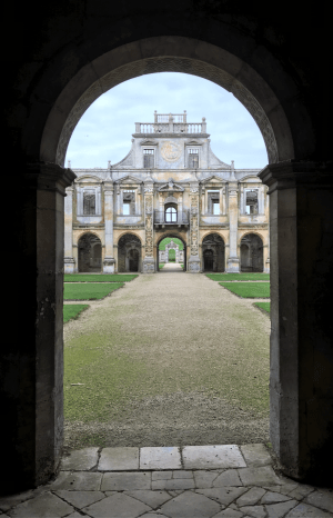 In fact only one of these was actually an opening. It stood on the southern side opening onto the valley below, but was later moved to the forecourt where it is now used as the main entrance to the site. The other two were closed arched structures built into the terraces which acted as both seats and eye-catchers at the end of the main paths. The one on the northern side is still in place, while archaeology has revealed a plinth and foundations of the same dimensions for the western one.