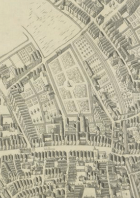 Annoyingly this is the edge of Merian’s map, and so we can’t identify Hatton’s house which was a little further out, nor Morin’s nursery which was close to the Hospital de la Charite.