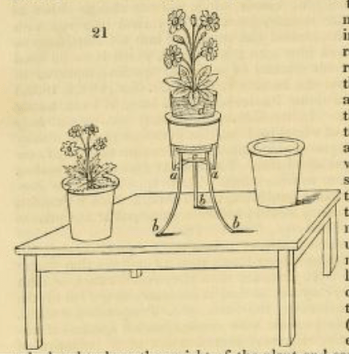 He told them about a zinc flange to stop slugs eating plants in a flower pot using galvanic action, how to maintain overnight heat in a hotbed using turf, how to use geese to clear pondweed, about the cheapness and efficacy of turf drains, and his device for watering turnips.