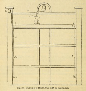 Saul’s next invention seems to have been inspired by Loudon, who on a visit to Lancaster commented on the problems of opening and closing of turnpike gates. This must have set Matthias thinking and in 1832 the Gardener’s Magazine carried a description of a device to open estate lodge gates at night without the watchman having to get out of bed! Actually his brain was so active that he devised two different systems which Loudon later included in his Encyclopaedia of cottage, farm, and villa architecture and furniture.