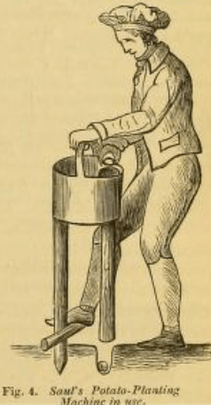 But by 1842 he couldn’t keep pen from paper and got back in touch with Loudon and the inventions start flowing again! There was an alarm bell system inspired by a local burglary, an improved boots scraper and an elaborate improved dahlia stake. In 1843 there was a long account of potato growing around Garstang and a description of how to use his patented Potato Planter.
