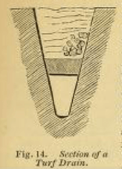 Cross section of a turf drain