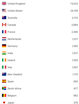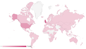 The percentage of UK viewers this year has gone up from just over 50% to over 60% but there’s still a substantial international appeal, mainly from the USA. Like last year the reach was pretty near global, with as you can see from the map, very few countries where the blog has had no viewers.
