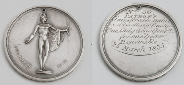 He set up the “National Sporting Club”, or “The Stadium”, in the grounds for ‘the cultivation of skilful and manly exercise‘, which included a huge range of activities including fencing, shooting, archery, sailing and even things like boomerang practice. These sports were captured on an engraving of the Chelsea Stadium Shield by Robert Cruikshank. others were covered at greater length in the pamphlet Berenger wrote promoting The Stadium.