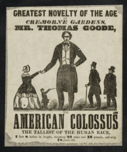 who was not to be confused with either The American Colossus or Joseph Brice the French Giant who stood nearly 8 feet tall and who resided in an Indian Temple in the gardens, which he refused to share with “the Woolly Woman of Hayti“.