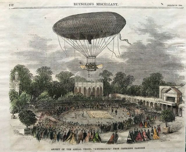 Other balloonists were merely cruel to themselves! In August, 1852, two acrobats Edouard and Jean Bouthellier who were performing in the circus as The Italian Brothers first singly and later together ascended on a trapeze attached underneath a balloon. One report said that “at a respectable height he began to twist himself round ‘almost in a knot,’ then to untie himself, and finally to suspend his body as he hung, first by his neck, then by his heels.” All ‘to the evident mingled alarm and pleasure of the spectators,’ which was thought to ‘rebound greatly to the credit’ of Mr. Simpson. The authorities took a different view and it was banned by police on the instructions of the Home Secretary .