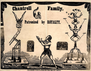 Entering from the main entrance on the Kings Road, on the right there was a circus tent, where Simpson hired a range of different circuses and troupes including the famous Parisian circus of Franconi. and later Souillier’s Cirque Orientel, as well as many well known [at the time!] individual performers of all kinds such as the American acrobatic star Professor Risley who was to go on and introduce circus arts to Japan, and the Chantrells.