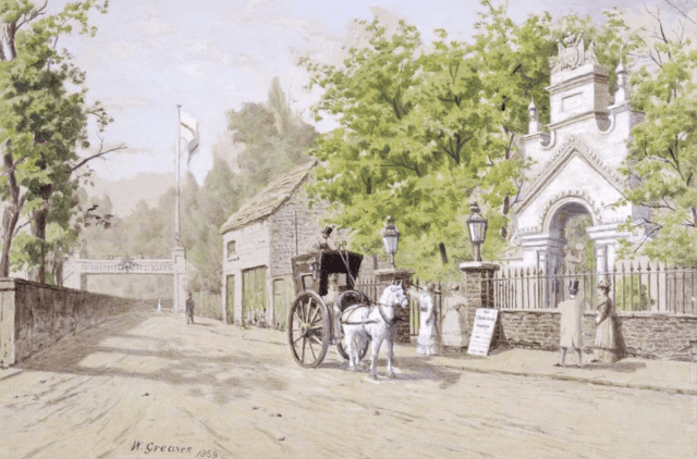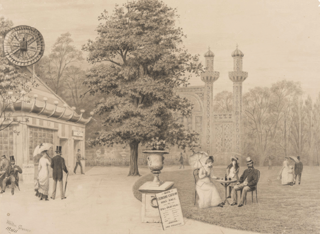 Successive lessees were keen to keep the gardens in top shape and to add improvements. Milner designed an American Garden which was according to George Glenny, ” planted with the most choice rhododendrons and azaleas, …the scene was complete and unquestionably beautiful. We seemed in another world, or at least in another country.” The whole area was “closed in with canvas” keeping it separate from the more colourful and raucous world outside.