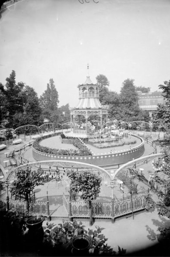 Nearby was a broad oval lawn where events such as maypole dancing were held, and in the early days, where balloon ascents took place.