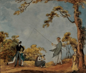 Netting fish slowly gave way though from the mid-17thc to angling with a rod, and Kate Felus suggests that it was gradually dying out , as utilitarian ponds, which tended to be small, gave way to much larger ornamental areas of water where netting was impractical. Although angling has a rather male reputation it’s clear from prints and paintings that many women also enjoyed the sport.