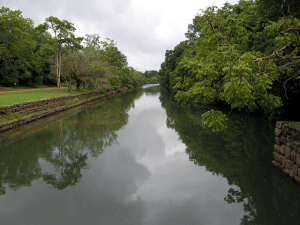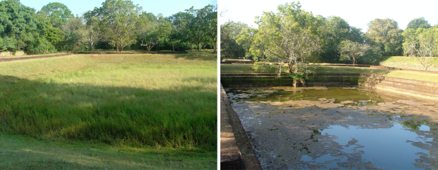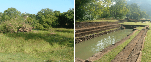 Until recently the appearance of these water gardens depended very much on the time of year and how much rain has fallen. In the dry season visitors used to report they looked somewhat underwhelming, [although like parch marks in Britain good for seeing the underlying structure] but that was largely because the ancient. water management system hadn’t been respaired. Today, as in Kassapa’s day, normally the water flows in abundance, and pools, stream and fountains are all full.