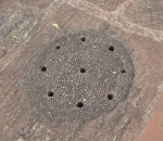 There are also a series of limestone fountains. Each has a circular plate with holes drilled through it. These sit over small containers which as they fill force the water through the plate to create a bubbling effect.