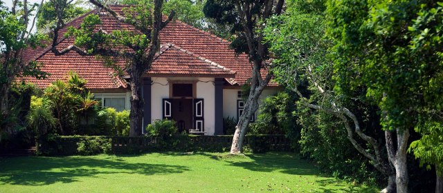 When he bought the estate the whole area around the house was covered in rubber trees. All the nearby ones were quickly removed and work started on redesigning the house and adding the north terrace. The house itself stands on a mound and is at first sight unremarkable.