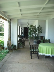 On the northern side of the house is a wide terrace which has gnarled and contorted specimen frangipani trees providing shade and scent. These were probably planted in the 1940s or 50s contemporary with the terrace.