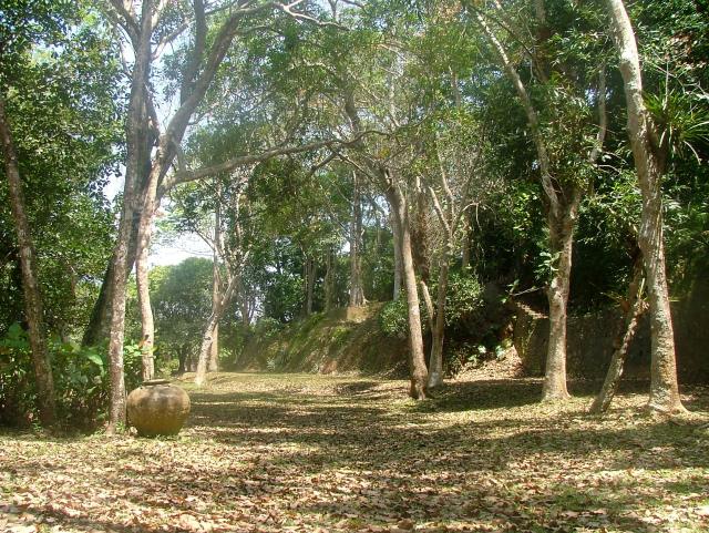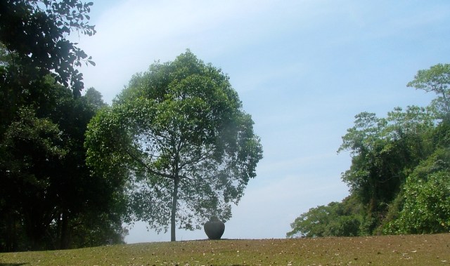 The last area of the garden is probably the largest, and certainly the closest to the English landscape garden in spirit. When Bawa arrived the whole area was covered with the rubber plantation trees which had themselves replaced an earlier plantation of cinnamon trees. He embarked on a complicated and ambitious scheme reminiscent of the 18thc landscaping movement which he admired so much. Firstly a massive clearance operation removed the rubber trees. This opened a long wide vista which falls away southwards from the house before rising again gently to the highest part of the garden, renamed Cinnamon Hill in honour of its past incarnation.