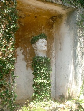 The approach to the estate is via a meandering maze of small village roads, through fields and thickly wooded patches before turning into a shady corner rather like a forest clearing. No big signs announcing you’d arrived, in fact nothing other a pair of gates with plant-topped piers. No obvious way of attracting attention either apart from a a bell on top of the gate. Once admitted there is a walk through dense greenery uphill towards the main house with no sense of what it is to come. No plans, no information boards, nothing really to distract . It was like visiting someone’s home when they were away on holiday. We had the luxury of being the only visitors that morning but these days things are much busier and there are regular guided tours. It’s also possible to stay as the estate is now run by a trust which has turned many of the various buildings into a boutique hotel.