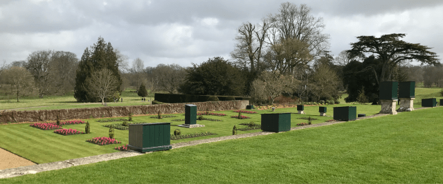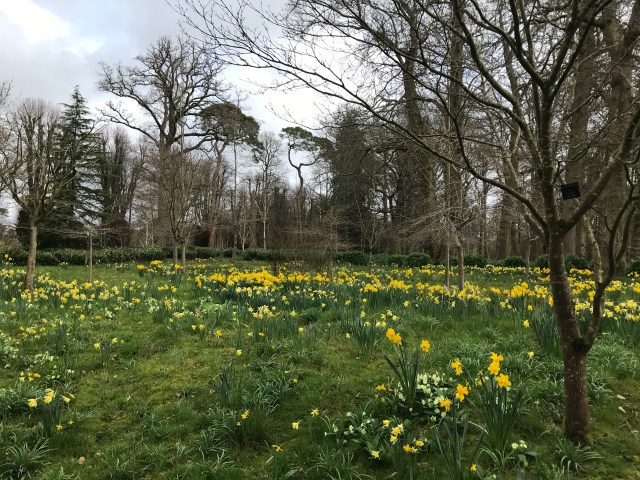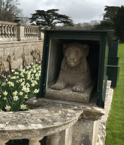 The formal gardens areas round the house still had winter protection around the various urns and statues but the parterre, already looked colourful with spring bulbs. It was designed in 1899 by CE Ponting, and what isn’t immediately obvious is that the pattern has been laid out to be seen from the loggia of the house, so the spacing between the beds gets wider the further away, giving a false sense of perspective. Continuing the visual axis from the loggia and through the parterre is an avenue of cedars.