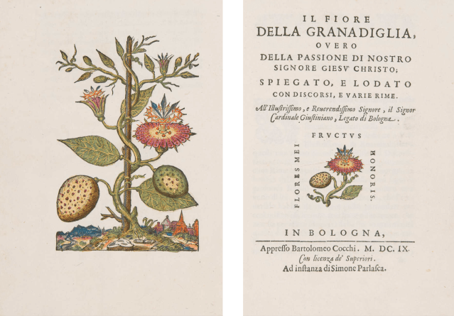 Simon Parlasca’s pamphlet Il fiore della granadiglia, overo della passione di nostro signore Giesu Christo, 1609 which explained  the symbolism
