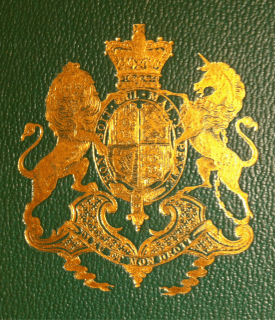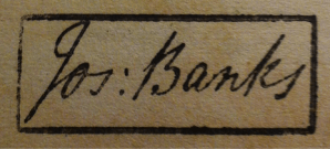 Inside the enormous archival box  was a slim folio-sized volume with George III’s crest embossed in gold on  the green leather cover.  Turning the first leaves there was  the library stamp of Sir Joseph Banks….