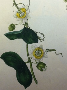 …and facing it a hand-coloured engraving of Passiflora serrafolia or the Notched-leaved Passion flower. Even a cursory glance through A Collection of Passion Flowers made me want to know more.