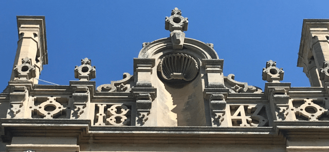While Salvin did the initial designs there’s no doubt that Gregory kept a controlling hand on things himself and there was definitely an element of one-upmanship in the design. Harlaxton is said to have one more room than Belvoir Castle, the seat of the Dukes of Rutland, which can be seen from the house across the Vale of Belvoir. His name is literally over the door, his face appears in a roundel on the staircase and his double G monogram is everywhere.