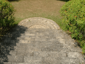 The northernmost of these open sections is the Horse Lawn, named for the statue that stands at the edge of the large square area of grass. On one side is a flight of steps which lead down into a moon-stone pattern reminiscent of a buddhist temple. Another side is open to an area of only semi-tamed forest which is now incorporated into the garden as “the wild wood”.