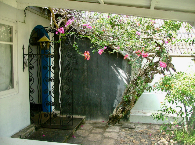 Rather like Geoffrey Bawa’s house at Lunuganga its easy to get confused because there are small courtyard spaces and verandahs almost everywhere round the house, and all verdant green with plants and dotted with ironwork, urns and statues.