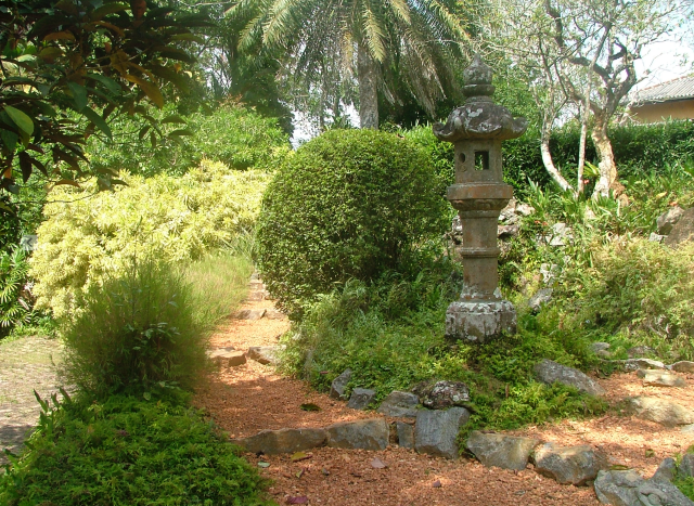 The dozen or so smaller clearings offer a range of diversions and effects. A garden with Japanese overtones, a dining space, stone benches and a turtle basin are all enclosed by an extraordinary rich mix of foliage and flowers with the occasional piece of art lying in wait to surprise you.