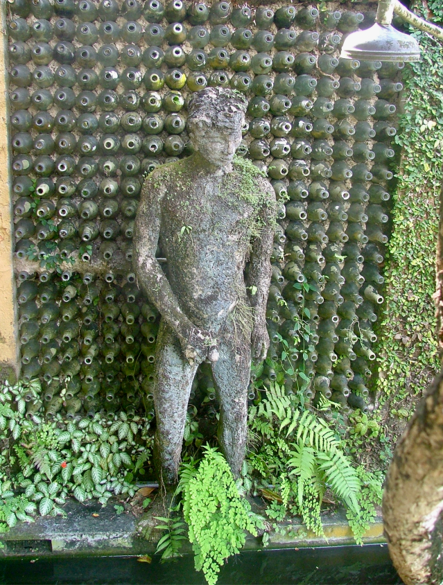 Many of the pieces were homo-erotic and they can be seen in many places round the garden, but they are witty and amusing rather than in anyway blatantly sexual in nature. They include versions of the Manneken Pis, and naked men with ferns as pubic hair.