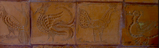 Friend produced the designs and Bevis supervised the estate workers making moulds for casting or sculpting everything from paving stones with imprinted leaf patterns to a whole range of anthropomorphic pots and weird and wonderful heads.