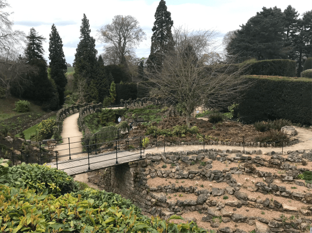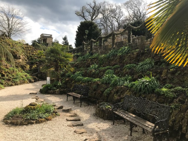 As you can see from the right and central sections of the view above, up to this point the layout of the gardens has been relatively straightforward and very formal and geometrical. Beyond it, at the far left hand edge of the image, a different style of Victorian gardening emerges, which is firstly more complex and secondly quite surprising in its variety and scale despite its comapratively small size. There are to start with, quite dramatic and unexpected changes in level because the areas furthest from the house were formerly part of a quarry. This means the gardens could be criss-crossed with paths and steps that wind and meander over different levels and with ingenious planting to block views, create the impression of there being more space than there actually is.