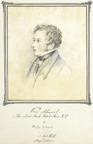 Lord Mark Robert Kerr (pronounced ‘Carr’) was born in 1776 the third son of the fifth Marquis of Lothian, a general in the army and a minor Georgian courtier. The family’s English seat was Charlton House, a grand Jacobean house near Greenwich, which may help explain why Lord Mark joined the navy at an early age. Aged 16 he was a Midshipman on the Lion, which went with Lord Macartney on his famously unsuccessful mission to China. between 1792 and 1794. Kerr went on to have a distinguished career during the Napoleonic Wars finally being made a vice-admiral in 1821.