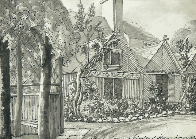 to much more modest residences such as the Old Rectory at Albury with its wonderful rustic summerhouse, resembling the one at Holmwood
