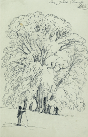 There are impressive avenues leading away from the house, which from the size of the trees were probably planted when the original house was built. [I love the way that what appears to be “domestic” furniture is dotted about in the shade too.] Kerr also drew several specimen trees and clumps as well more general woodland and landscapes scenes.