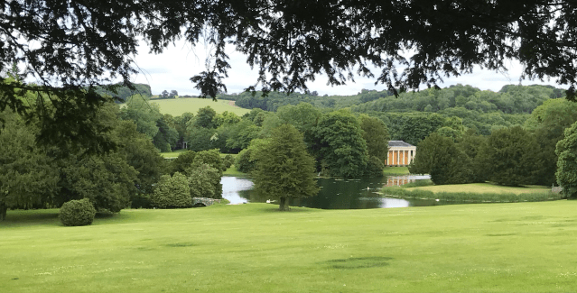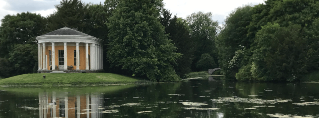 The lake has three islands, with the Temple of Music on the the largest. A simple Doric structure, it was one of the last features to be built by Dashwood, dating from the late 1770s, and was described in a 1781 inventory as a theatre presumably because it was used for performances, which apparently it still is.